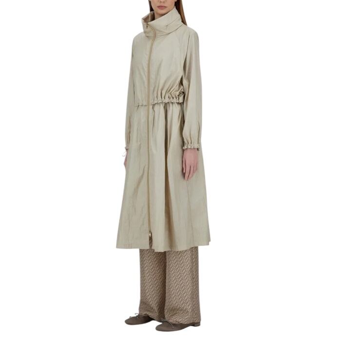 20デニールのテクニカルファブリックで作られたコート。生地は、エレガントなメタリック調の光沢を出す加工が施されています。 収納可能なフード付きで、ウエストにはドローストリングを備えており、袖口はフィット感を調節可能。洗練されたスタイルと機能性の両立を叶える一枚として活躍します。 オーバーサイズフィット ハイネック フードは収納可能 サイドポケット 袖口はゴム仕様、ドローストリング付き ウエストはゴム仕様、ドローストリング付き バックにHernoのメタルロゴ ダブルファスナーで開閉 イタリア製 パフォーマンス:撥水加工