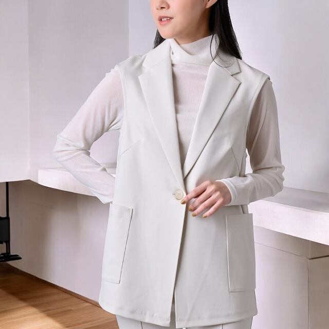 ■PUPULA ププラ ハイテンションファブリック ミドルレングス ジレベストは、30代から60代の女性にぴったりのアイテムです。スタイリッシュでありながら着心地も追求したデザインで、カジュアルからフォーマルまで幅広いシーンで活躍します!便利なポケットも付いていて、実用性も兼ね備えています。