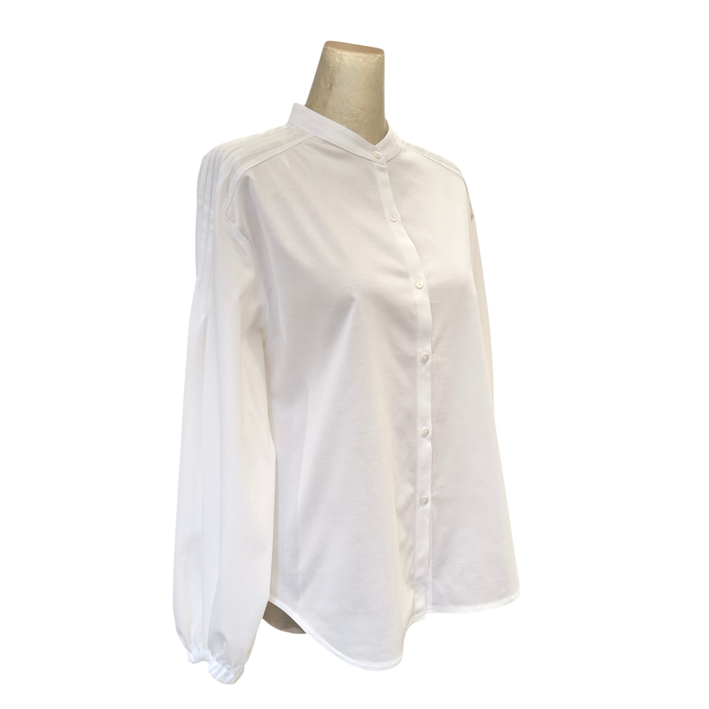 PUPULA(ププラ)タックデザインショルダースリーブ ノーカラーシャツブラウス【レディースファッション 30代 40代 50代 60代】