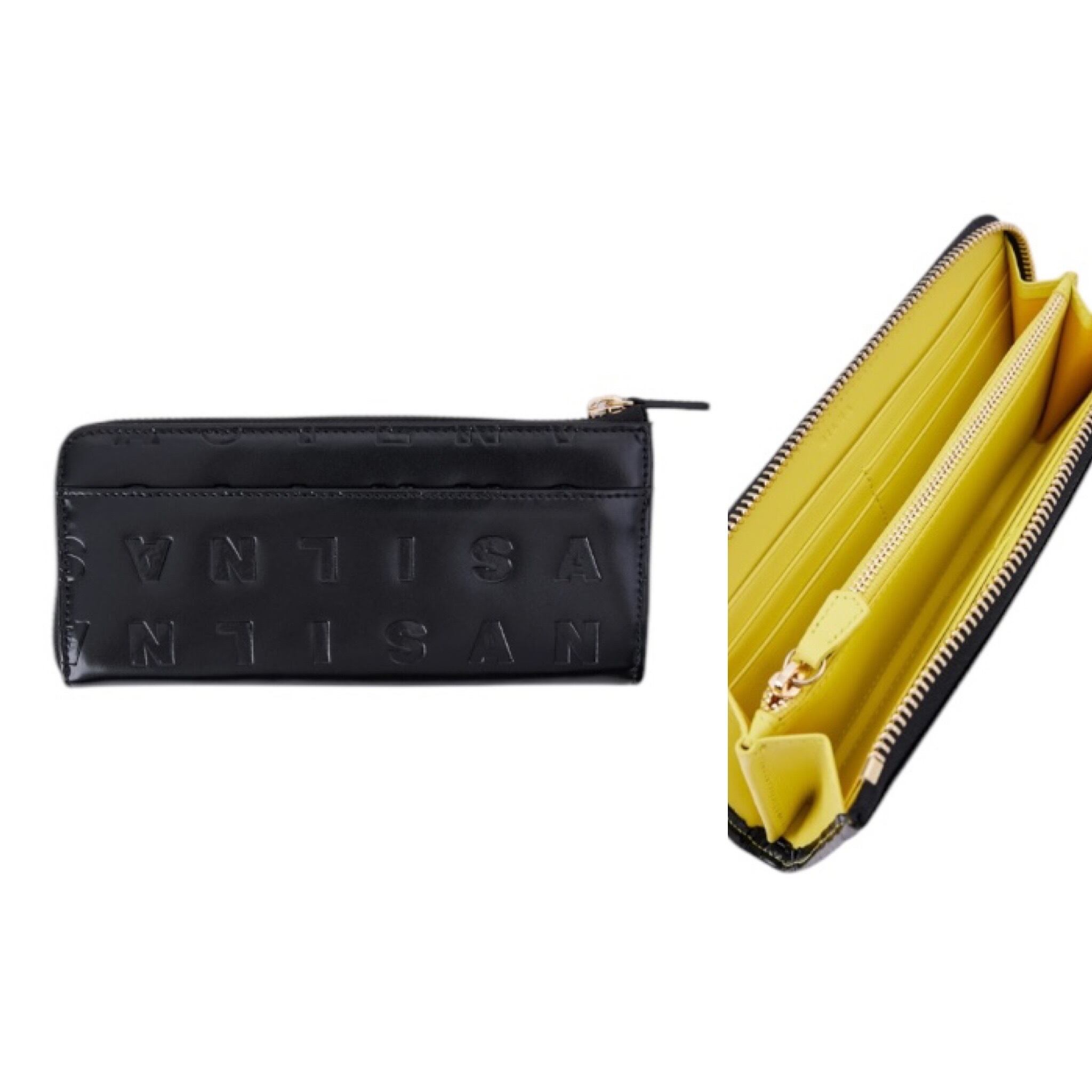 型押しのロゴが施されていることで、シンプルながらも 存在感のあるデザインに。 カード、お札、小銭もしっかり収納可能。 使いやすさを追求したL型長財布です。 牛革のエナメル加工を施し、耐久性も抜群。