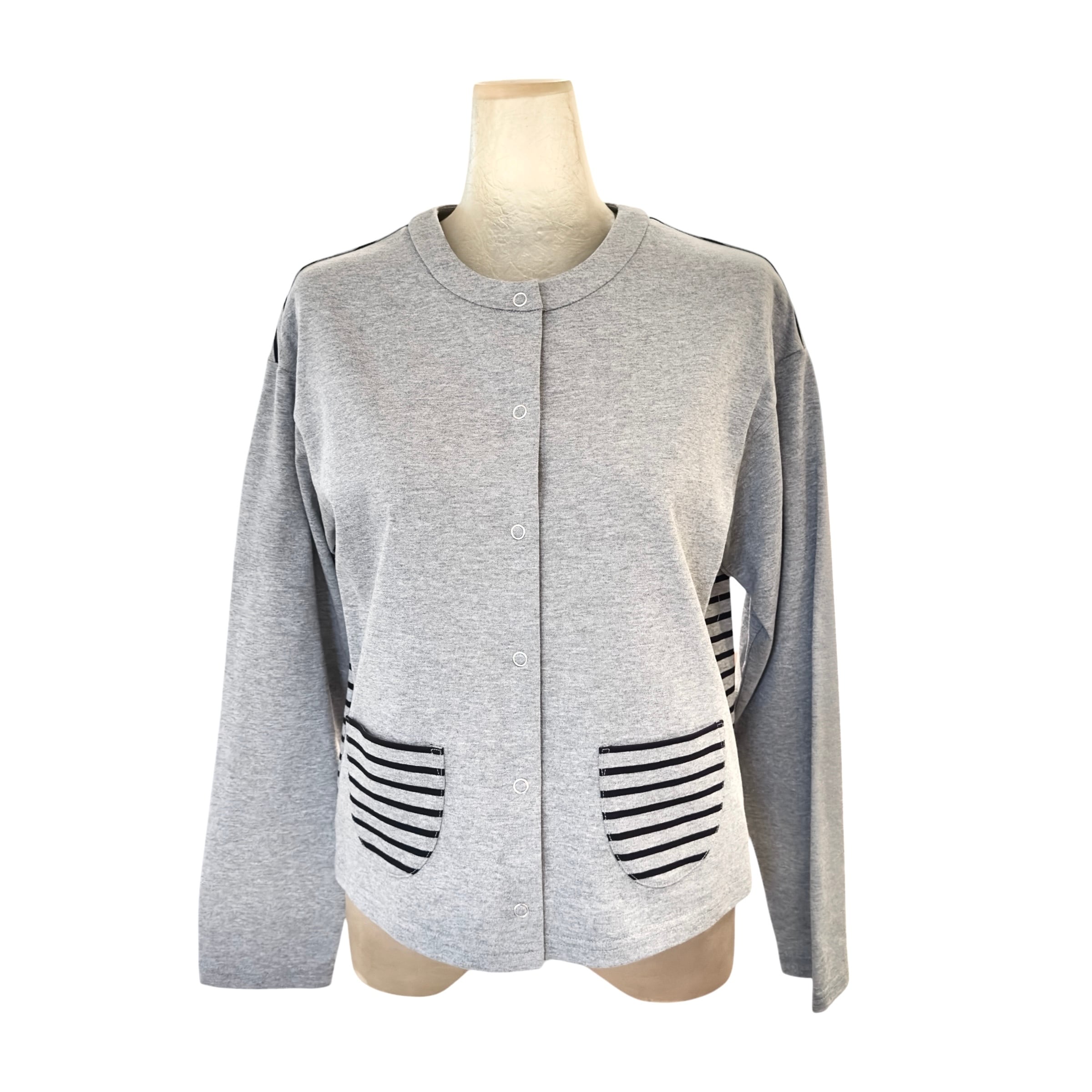 sc21 切り替えボーダー スナップボタン コットンジャージ クルーネックカーディガンプルオーバー【レディースファッション 30代 40代 50代 60代 60代】