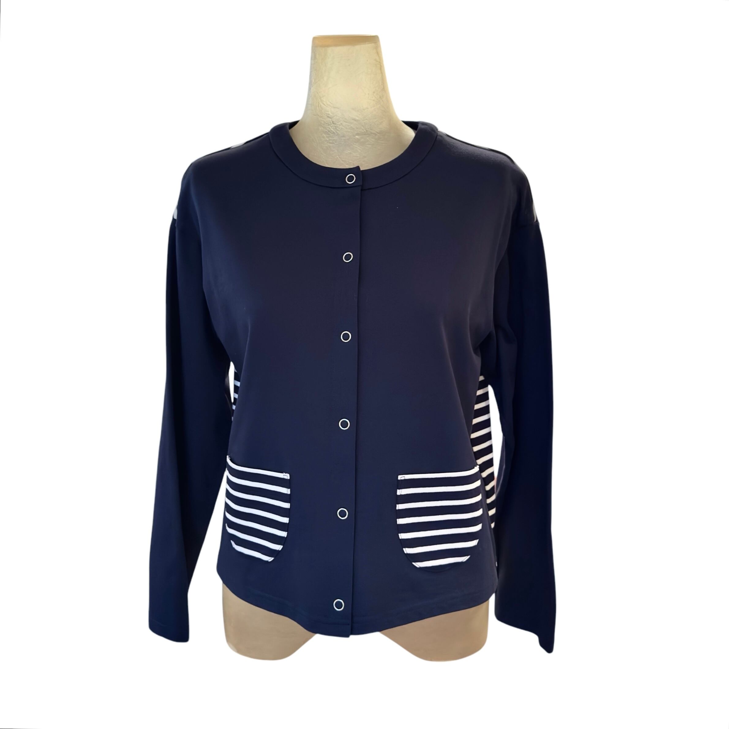 sc21 切り替えボーダー スナップボタン コットンジャージ クルーネックカーディガンプルオーバー【レディースファッション 30代 40代 50代 60代 60代】