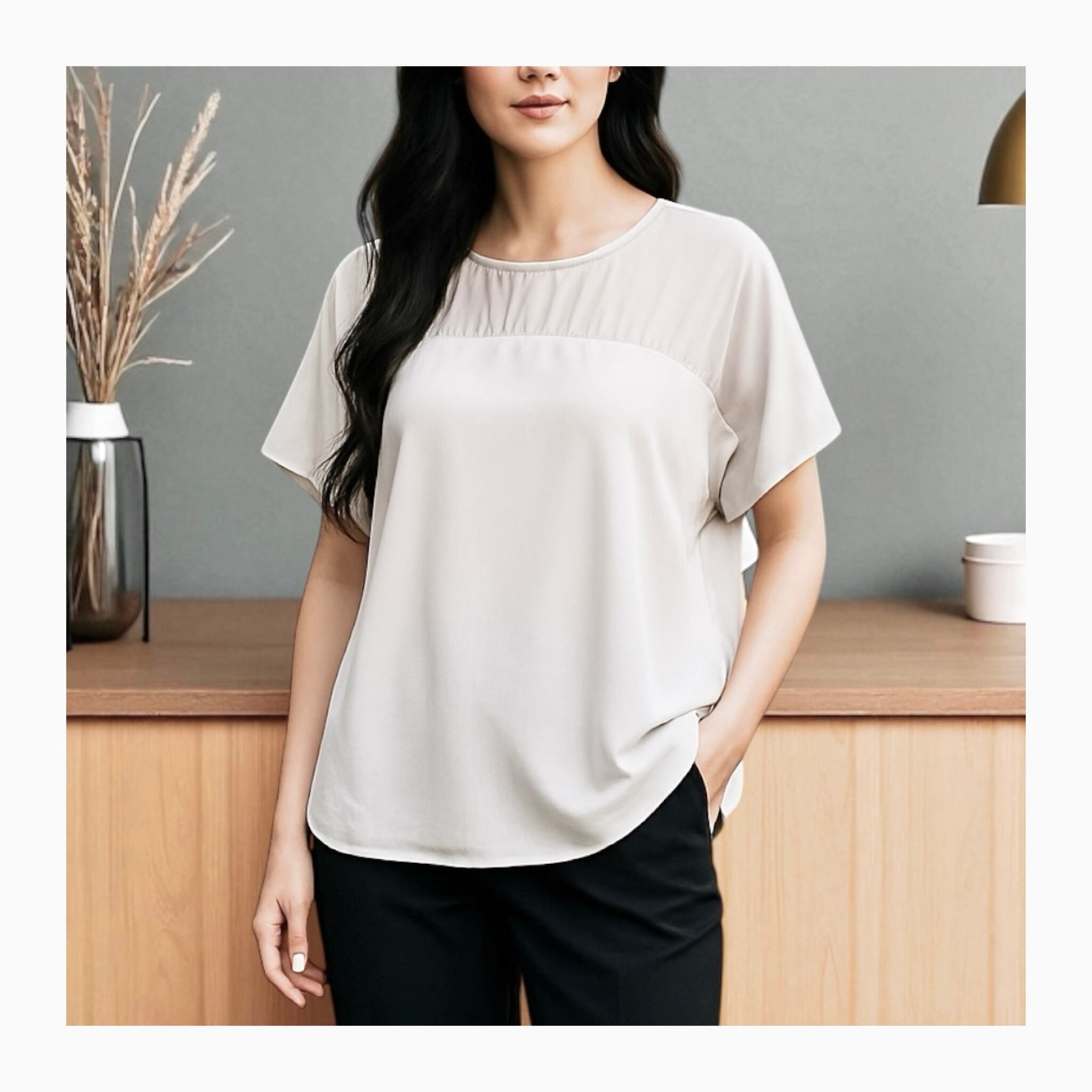 PUPULA(ププラ) スムースファブリック 後ろ下がり シフォンオーガンジー 切り替えプルオーバー 【レディースファッション 30代 40代 50代 60代】