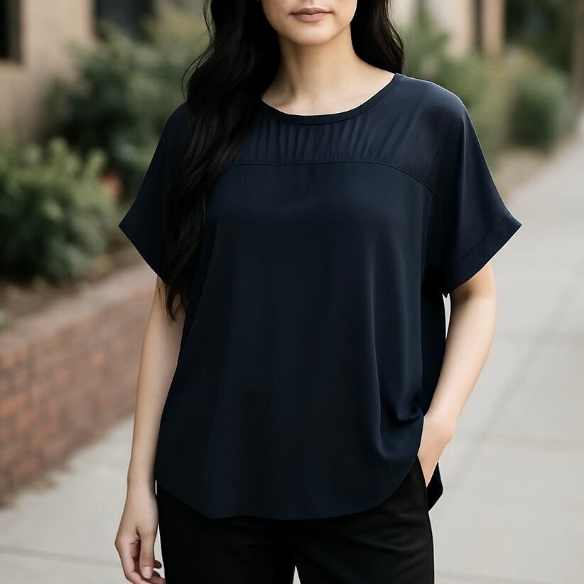 PUPULA(ププラ) スムースファブリック 後ろ下がり シフォンオーガンジー 切り替えプルオーバー 【レディースファッション 30代 40代 50代 60代】