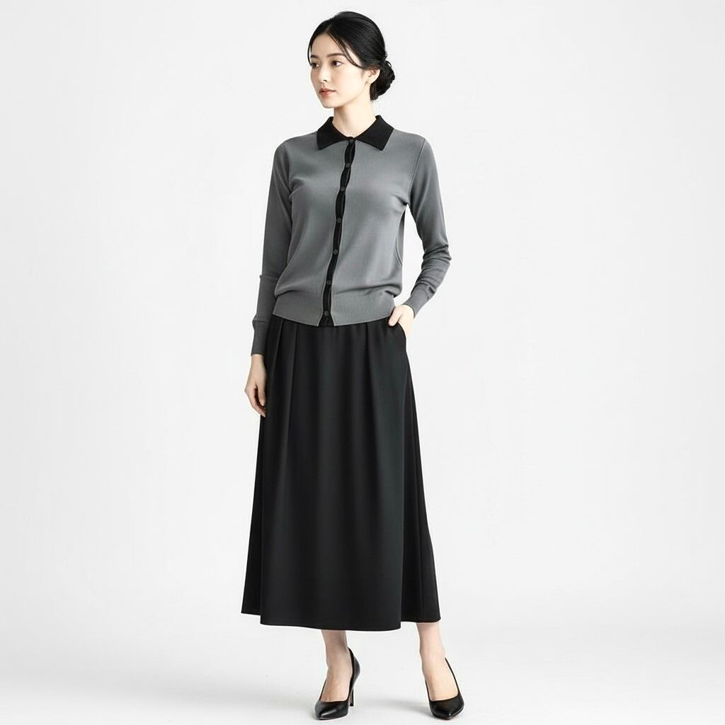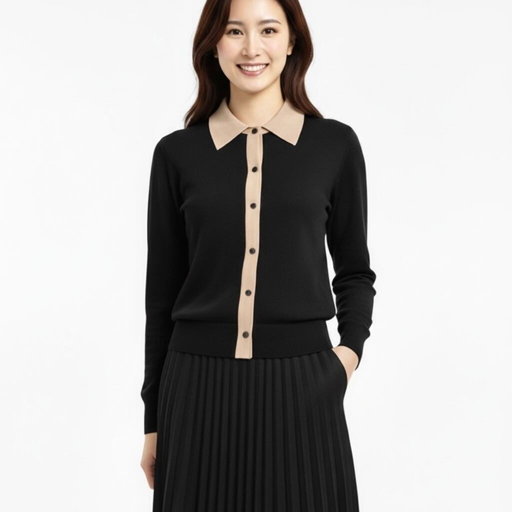 PUPULA ププラ レーヨンナイロンブレンド ミラノリブ バイカラートリミング カーディガン プルオーバー【レディースファッション 30代 40代 50代 60代】