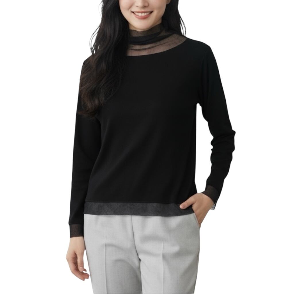PUPULA(ププラ) コットンカシミア チュールトリム プルオーバー【レディースファッション 30代 40代 50代 60代】