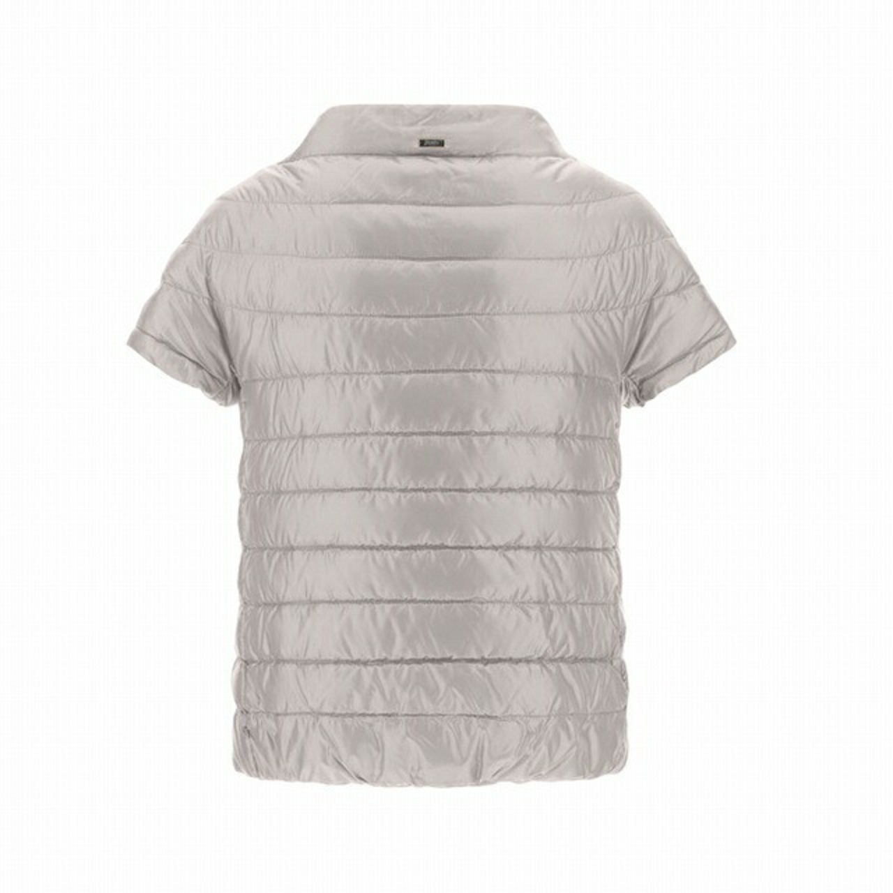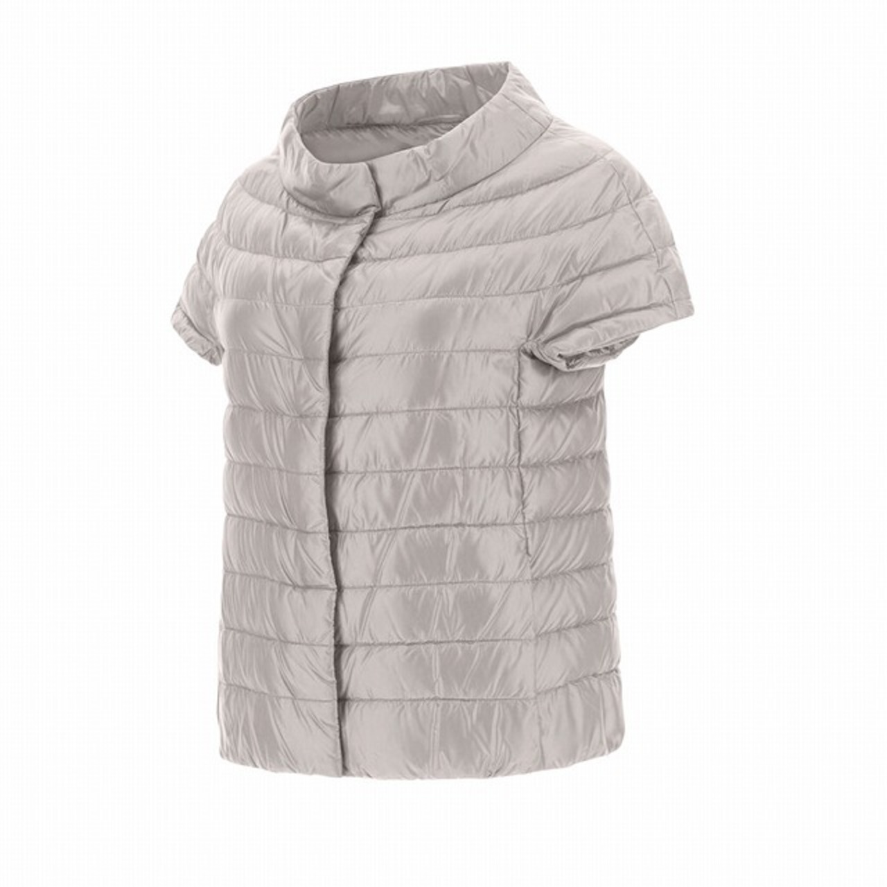 ヘルノのシグネチャーである半袖丈のケープスタイル。200gの超軽量ナイロンで作られています。 ウルトラファイン グースダウンの中綿とシルキーなナイロン素材による、極めて軽量で繊細な手触りの一着。 レギュラーフィット カウルネック 隠しスナップボタンの留め具 ショートスリーブ ウェルトポケット 特性: 撥水加工