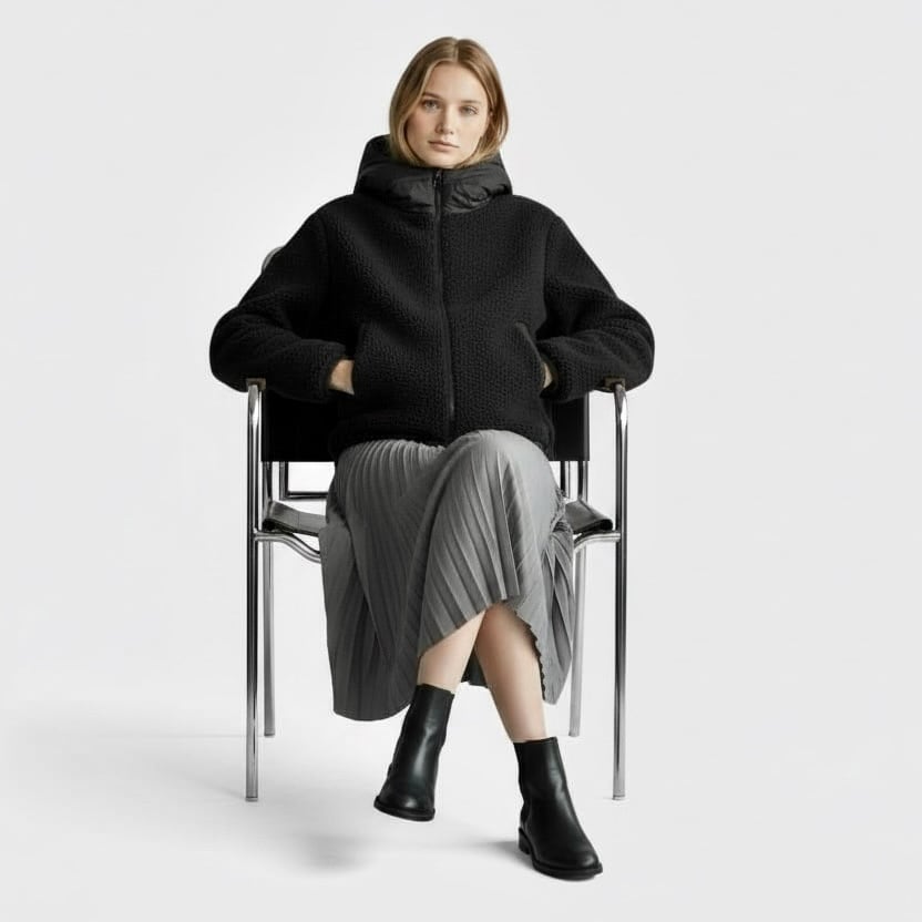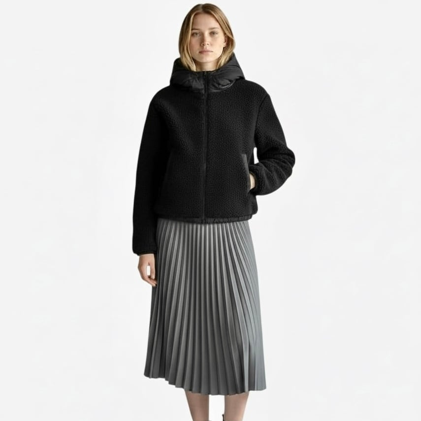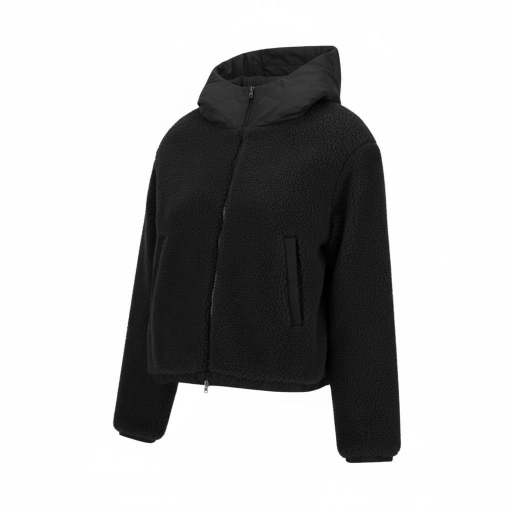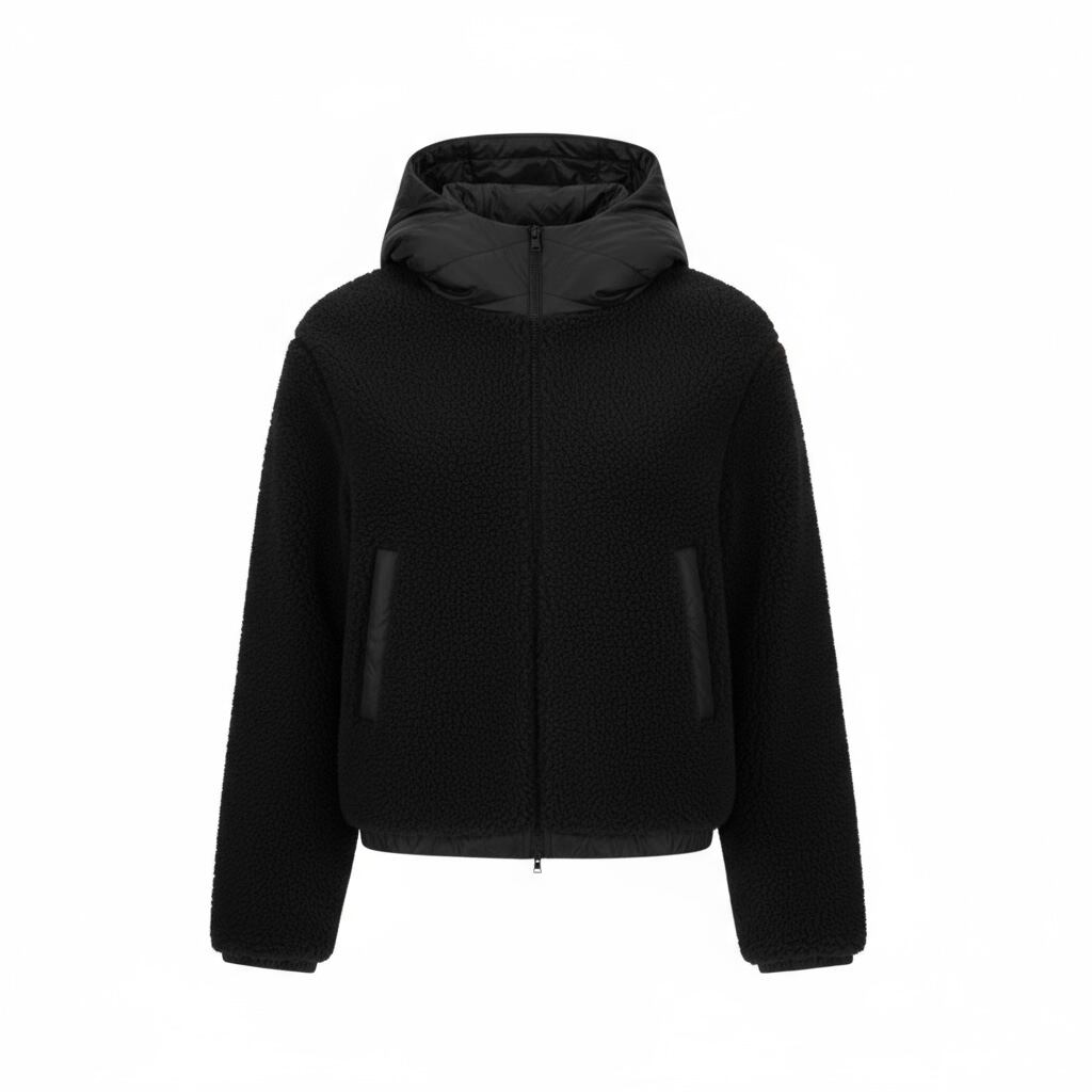 ■特性/シェルパフリースを使用したジャケット。柔らかでエアリーな軽さながら暖かい着心地。この生地はリサイクル繊維を編む技術で作られているため、サステナブルな配慮もされています。カジュアルな定番アイテムながらラグジュアリーな印象。優れた撥水性と、シルクのような滑らかな触り心地が特徴のナイロンウルトラライトのフードが特徴で、ヘルノのシグネチャースタイルを最も純粋に表現したデザインです。 レギュラーフィット 中綿入り フード付きのスタンドカラー サイドにウェルトポケット フードにメタルのHernoロゴ ダブルジップで開閉 裾サイドにドローコード