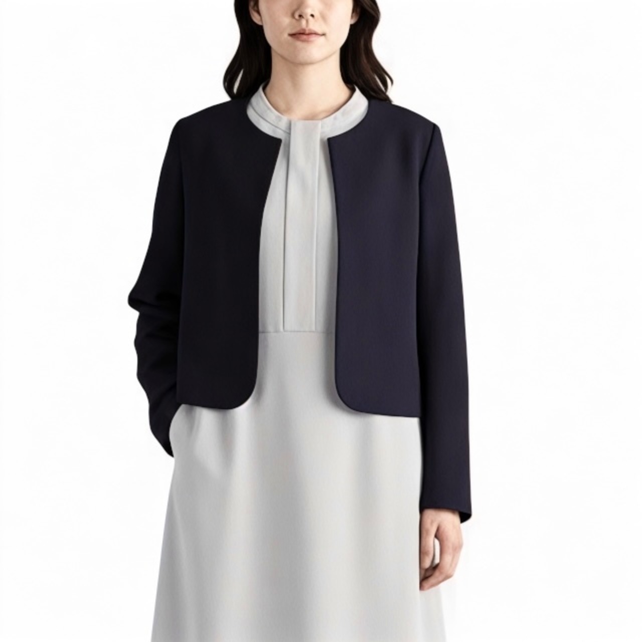 PUPULA (ププラ)【 インスタグラム 動画掲載 】 アクアダブルファブリック ノーカラー ベーシック ショートジャケット (インナーは含まれません。)【select shop】【セレクトショップ】【レディースファッション 30代 40代 50代】