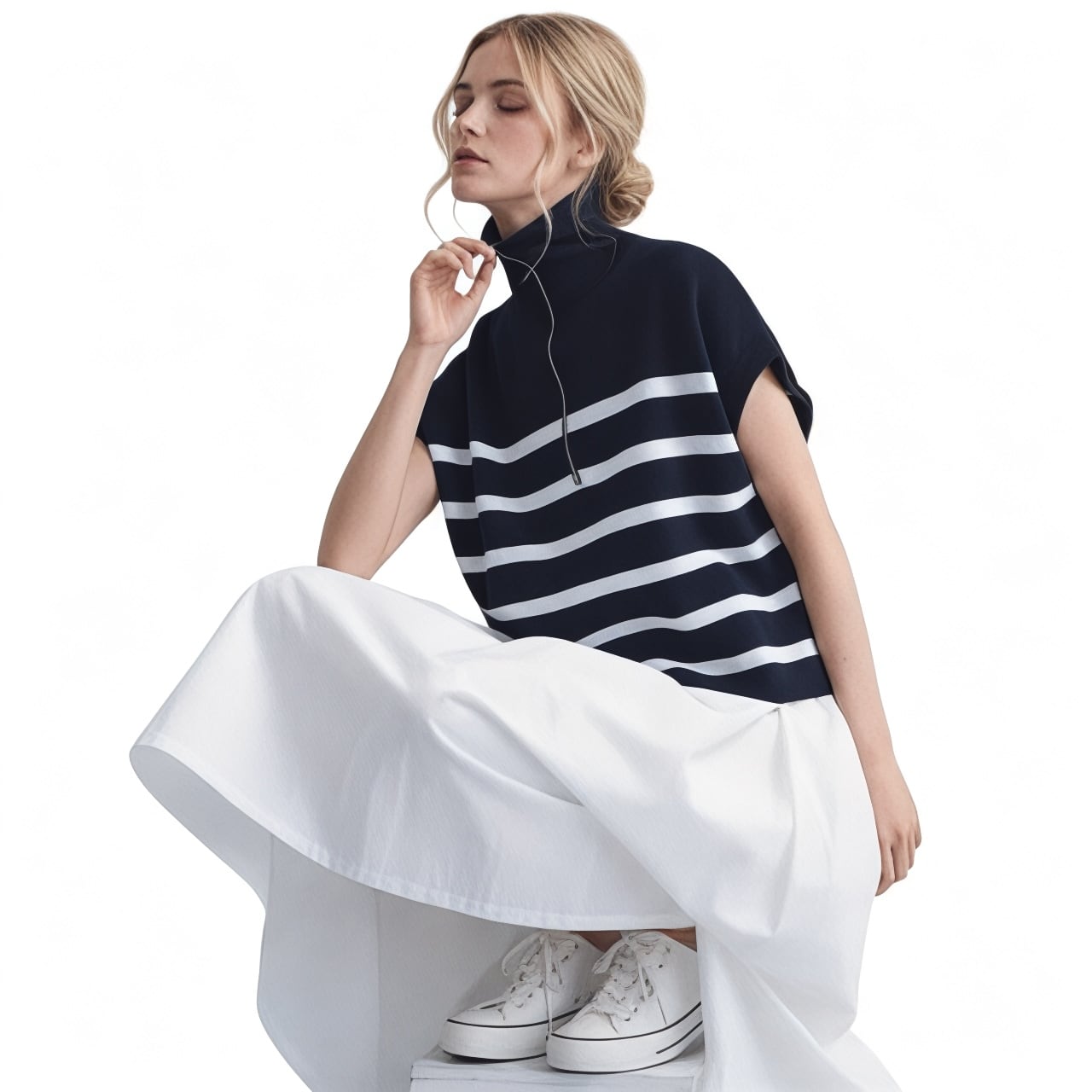 blancver (ブランベール) ミラノリブ ボーダー ハーフジップニットプルオーバー【レディースファッション 30代 40代 50代 60代】