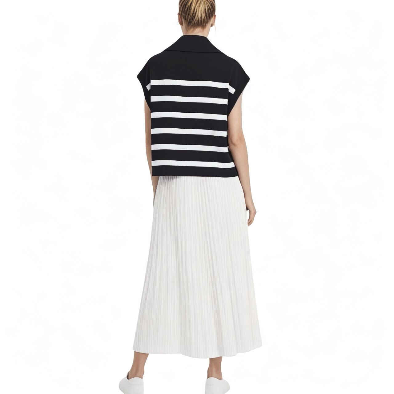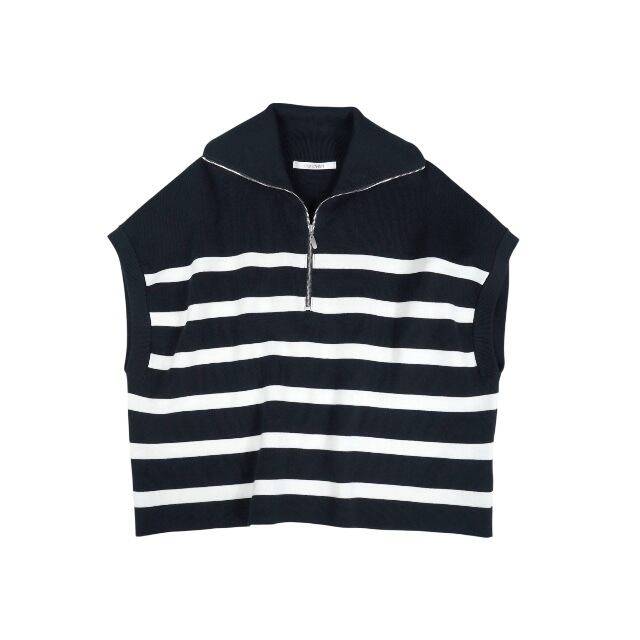 ■comment/ブランベールのベストです。 超長綿と長綿を紡績。ソフトな風合いで毛羽が少なく 光沢感があるのが特徴です。しっかり目のミラノリブ。 高めの襟はボーダー柄、ジップは高級ファスナー エクセラ使用です。