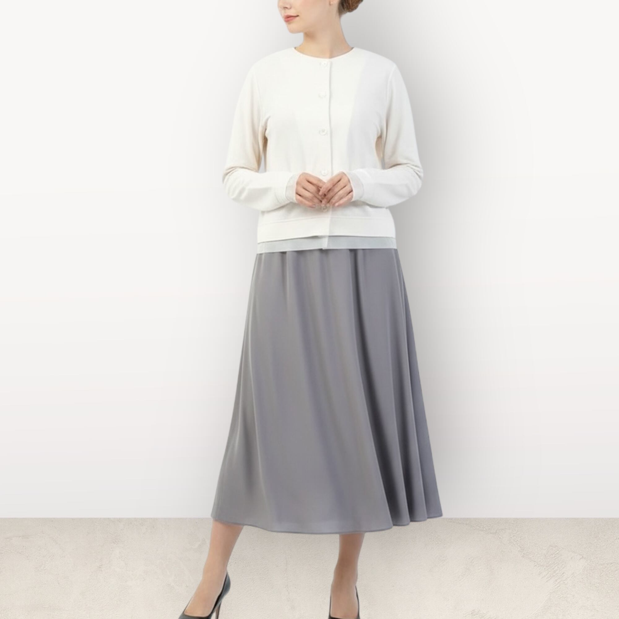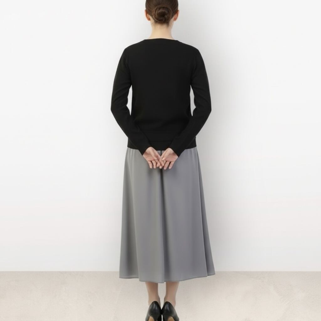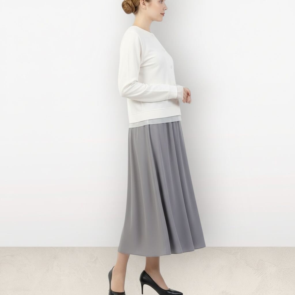■comment/PUPULAのコットンシルクブレンド ミラノリブ チュールトリム クルーネックプルオーバー カーディガンは、上品で洗練されたデザインが際立つ一着です。柔らかなコットンとシルクのブレンド素材がもたらすしなやかな肌触りは、まるで肌に触れるような心地よさ。ミラノリブのしっかりとした編み地が、上質な印象を演出しつつ、快適さを保持します。さらには、さりげないチュールトリムがアクセントとなり、特別なシーンでも楽しめるスタイルに仕上がっています。30代から60代の女性にぴったりのデザインで、カジュアルな日常使いやオフィススタイル、お出かけにも幅広くご使用いただけます。