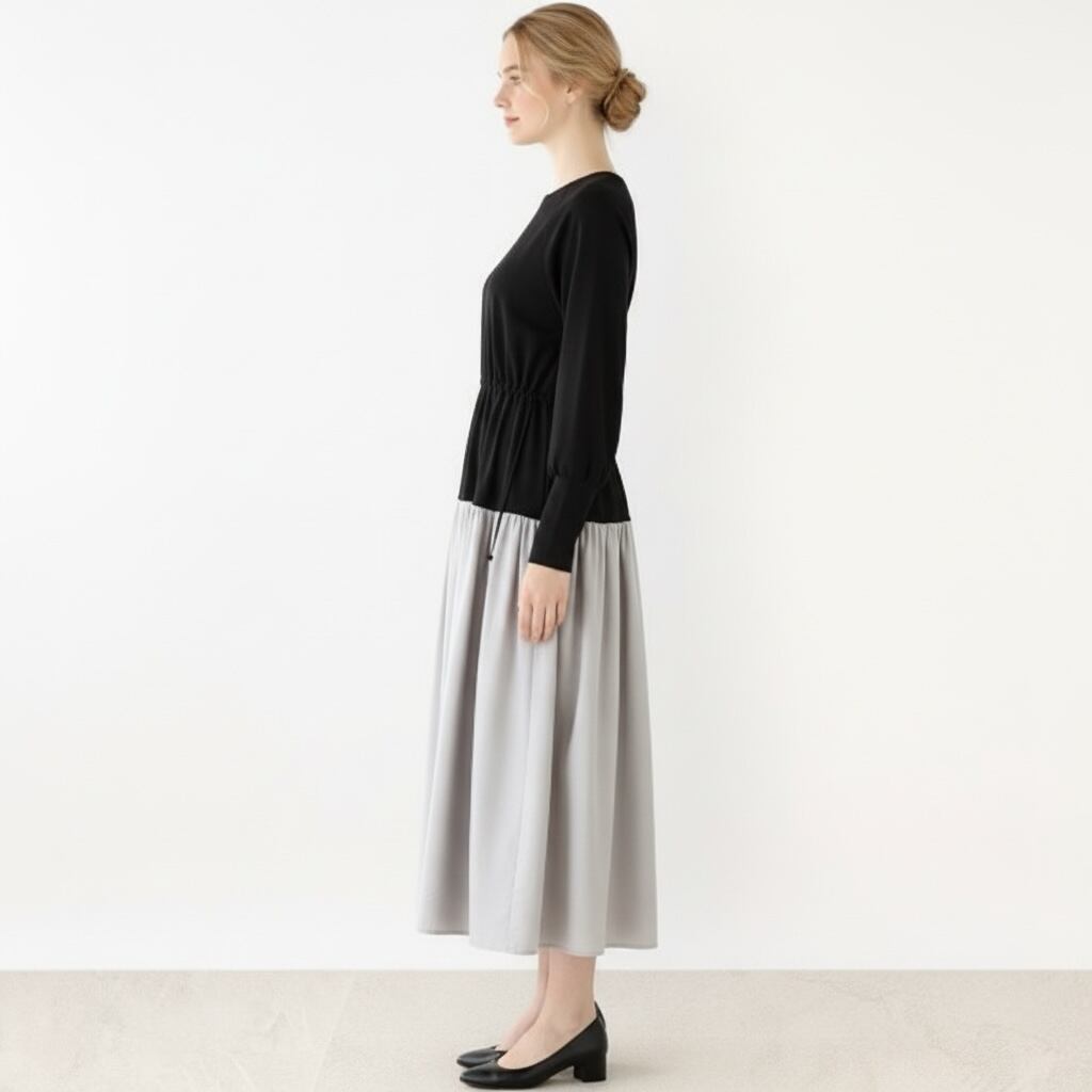 blancver (ブランベール) ベアポンチ ドッキング ロングスリーブ ワンピース【レディースファッション 30代 40代 50代 60代】
