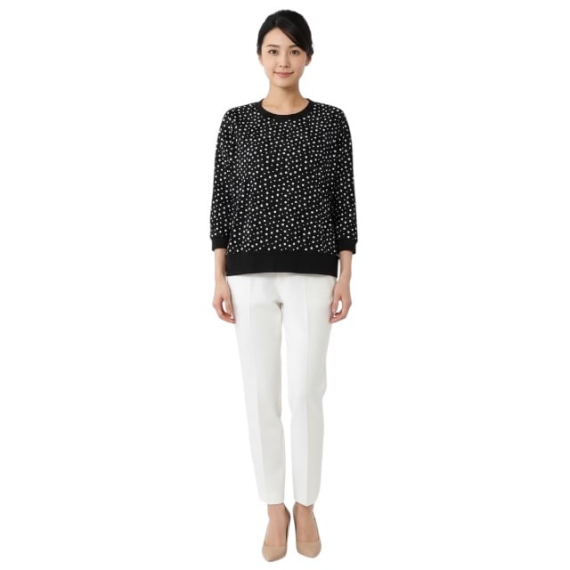 PUPULA ププラ ドットプリント 七分袖 クルーネックプルオーバー【レディースファッション 30代 40代 50代 60代】