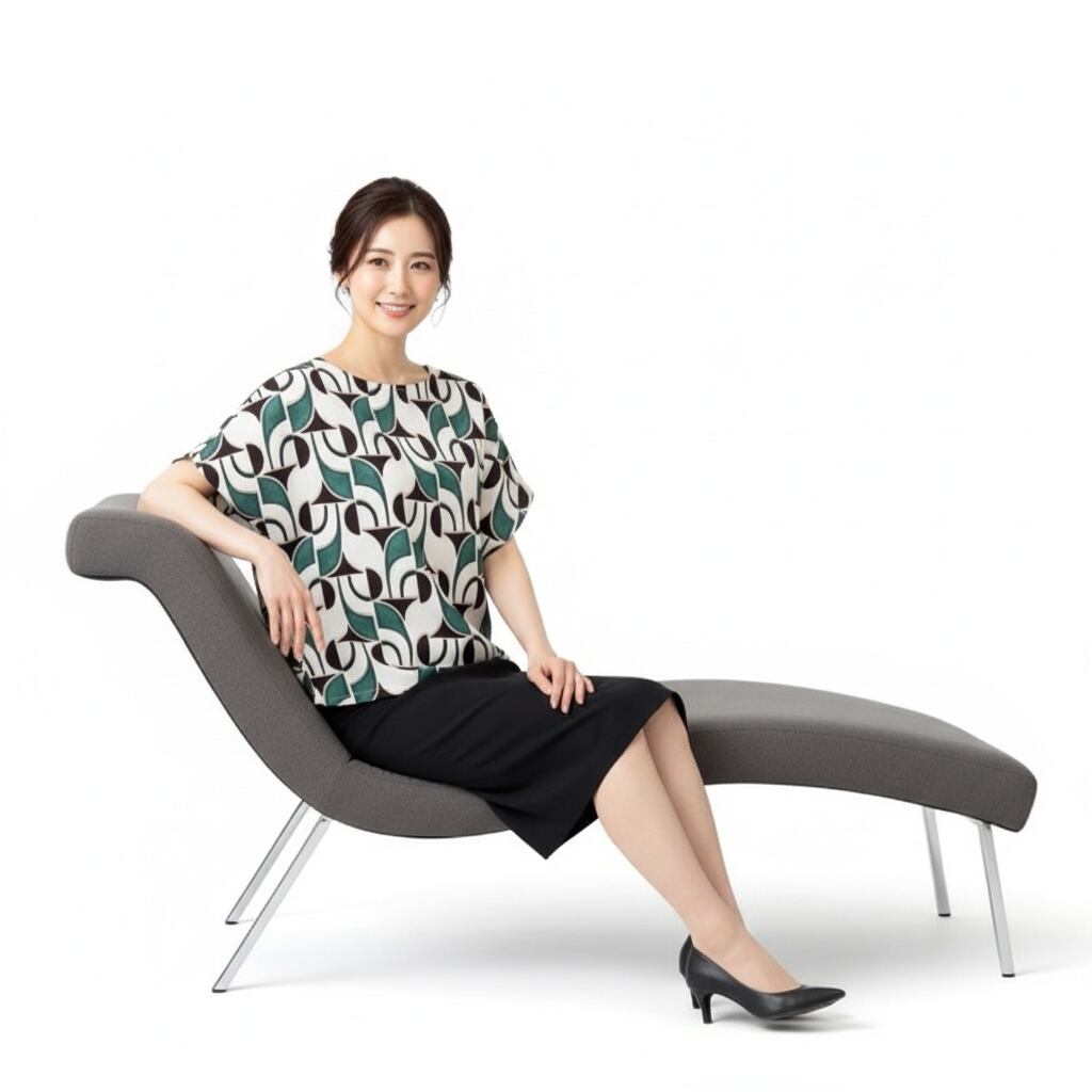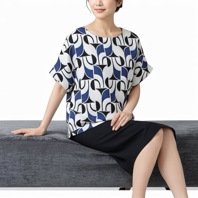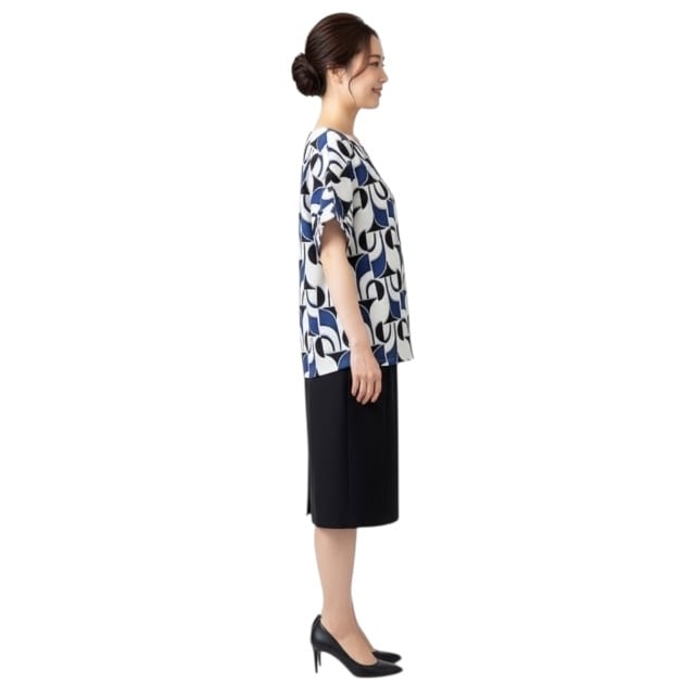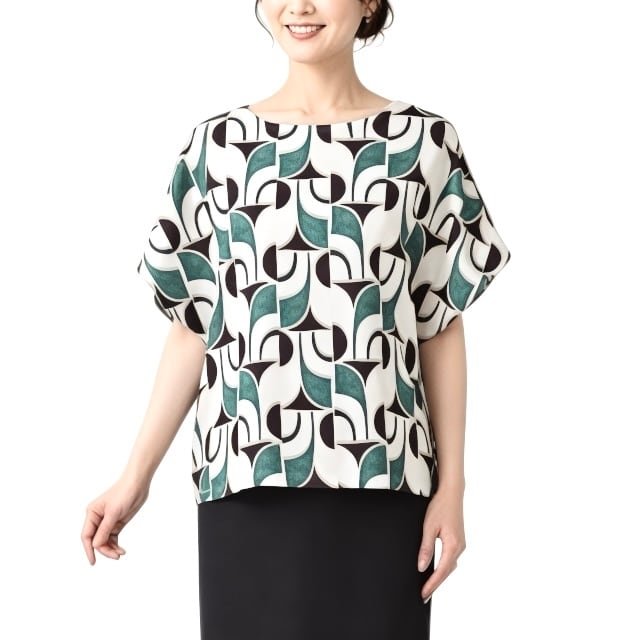 PUPULA(ププラ) ジオメトリックプリント ハーフスリーブブラウス【レディースファッション 30代 40代 50代 60代】
