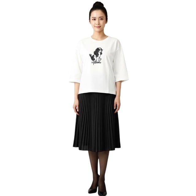 PUPULA(ププラ) ドッグモチーフ刺繡+スパンコールトリム コットンジャージィーカットソー【レディースファッション 30代 40代 50代 60代】