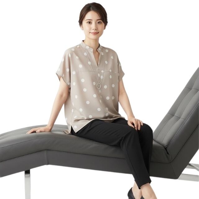 blancver (ブランベール) ドットプリント ヘンリーカットネック ブラウス【レディースファッション 30代 40代 50代 60代】
