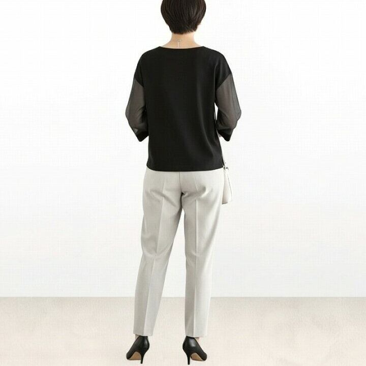 PUPULA(ププラ) コットンボイルシフォンスリーブ 七分袖カットソー【レディースファッション 30代 40代 50代 60代】