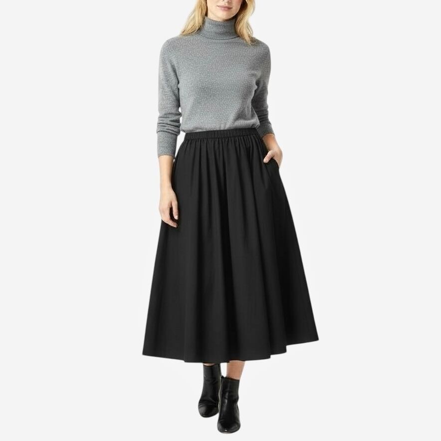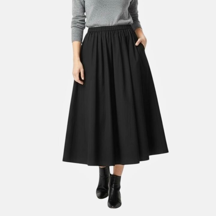 PUPULAのタフタストレッチ フレアー ロングスカートは、軽やかさと動きやすさを兼ね備えた優れたアイテムです。特に30代から70代の女性に向けたこのスカートは、エレガントさとカジュアルさを併せ持ち、デイリーコーディネートに華やかなアクセントを加えてくれます。