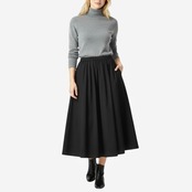 ストレッチが効いたタフタ素材は、快適な着用感を提供し、動きやすさを実現。フレアーラインは女性らしいシルエットを強調し、スタイルを美しく見せる効果があります。ウエスト部分はすっきりとしたデザインで、トップスとの相性も抜群です。