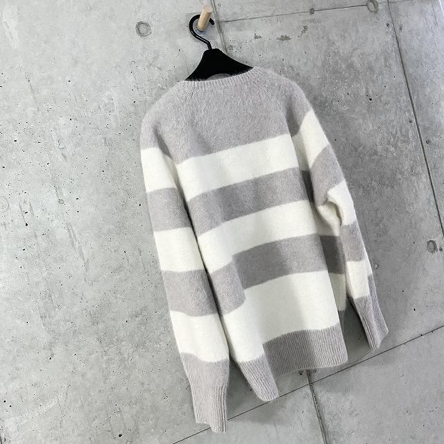 フォックスとカシミアをブレンドし、高品質なニット仕立てに仕上げられています。柔らかく、ふんわりとした着心地が特徴で、優雅なシルエットを演出します。ボーダー柄は、シンプルながらもデザインにアクセントを加え、カジュアルでもエレガントでも両方楽しめる魅力的なアイテムです。
