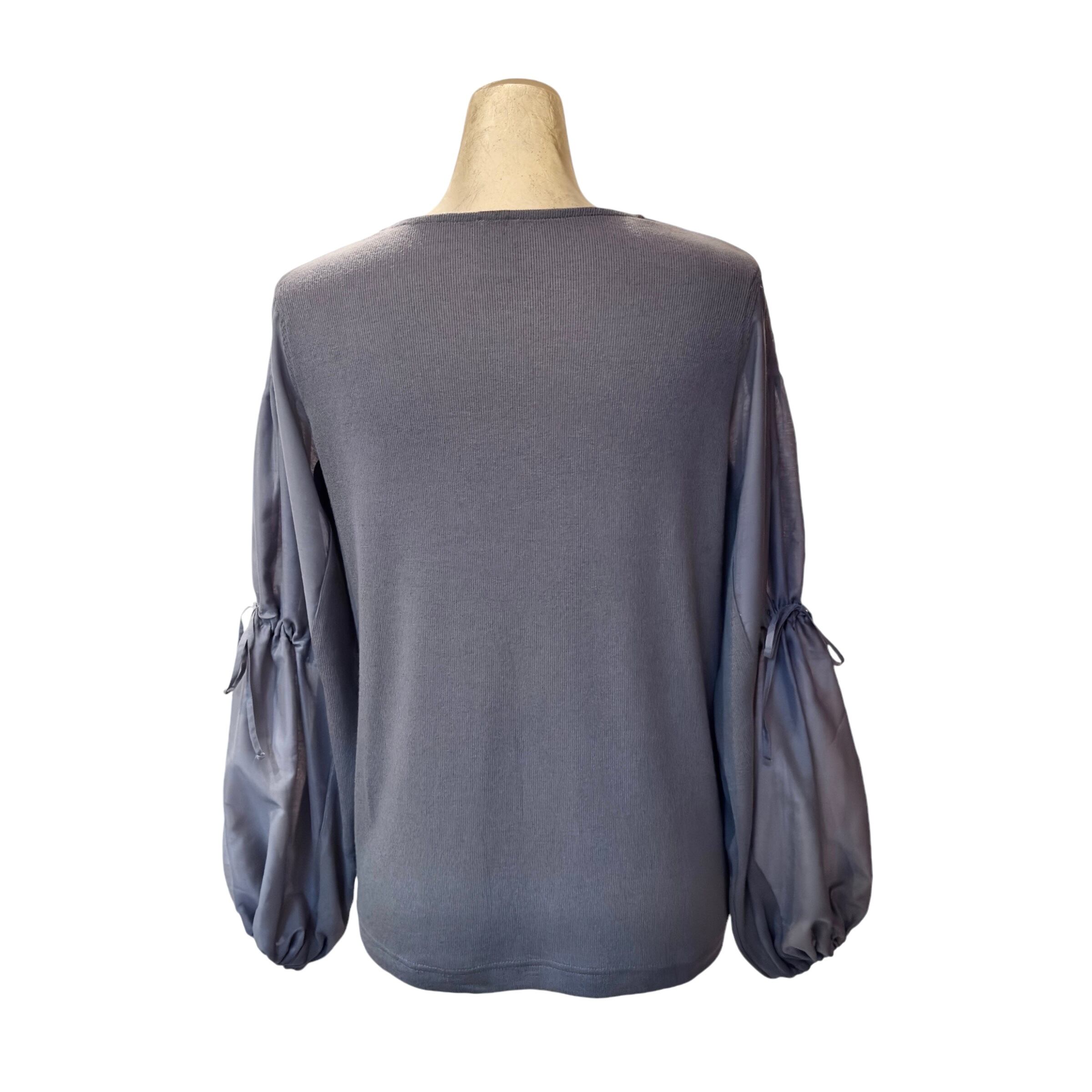 PUPULA(ププラ) レーヨンウールブレンド シフォンシャーリングデザインスリーブ プルオーバー【レディースファッション 30代 40代 50代 60代】