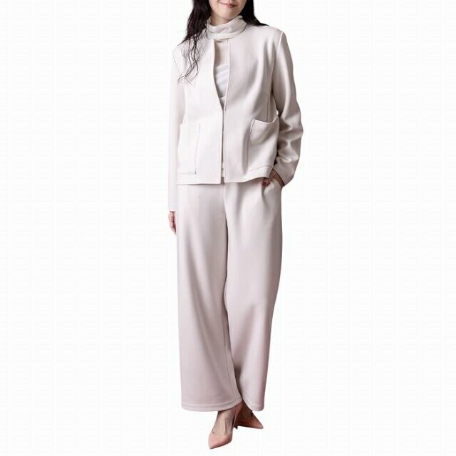 PUPULA (ププラ) アクアダブルファブリック ポケットトリム ノーカラー ジャケット 【レディースファッション 30代 40代 50代 60代】