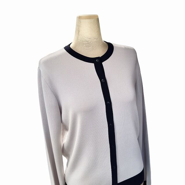PUPULA ププラのレーヨンナイロンブレンド バイカラートリミング ハイゲージ クルーネックカーディガン プルオーバーは、洗練されたデザインと快適な着心地が魅力のアイテムです。このカーディガンは、上質なレーヨンとナイロンのブレンド素材を使用しており、柔らかく肌触りが良いのが特徴です。バイカラーのトリミングがアクセントとなり、シンプルながらも洗練された印象を与えます。 クルーネックのデザインは、どんなアイテムとも合わせやすく、オフィスからカジュアルまで幅広いシーンで活躍します。ボタンを留めてすっきりとしたスタイルにも、開けてラフな印象にも調整可能です。色合いは落ち着いたホワイトとブラックで、30代から60代の女性に幅広くお使いいただけるデザインです。 このカーディガンは、日常の装いに上品さと快適さをプラスするアイテムとして、多くの女性におすすめです。シンプルながらも目を引くデザインは、どんな場面でも自信を持って着用できる一枚です。
