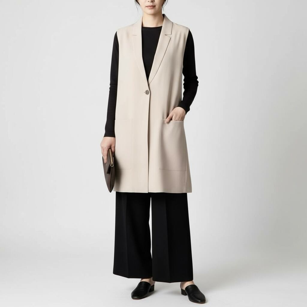 PUPULAのレーヨンナイロンブレンド ミラノリブ ミドルレングス ジレ ベストは、エレガントなデザインと快適な着心地を兼ね備えた一品です。上質な素材が使用されており、軽やかでありながらしっかりとした作りが特徴です。ミドルレングスのデザインは、さまざまなスタイルに合わせやすく、30代から60代の女性にぴったりです。シンプルながらも洗練された印象を与え、日常の装いを格上げします。