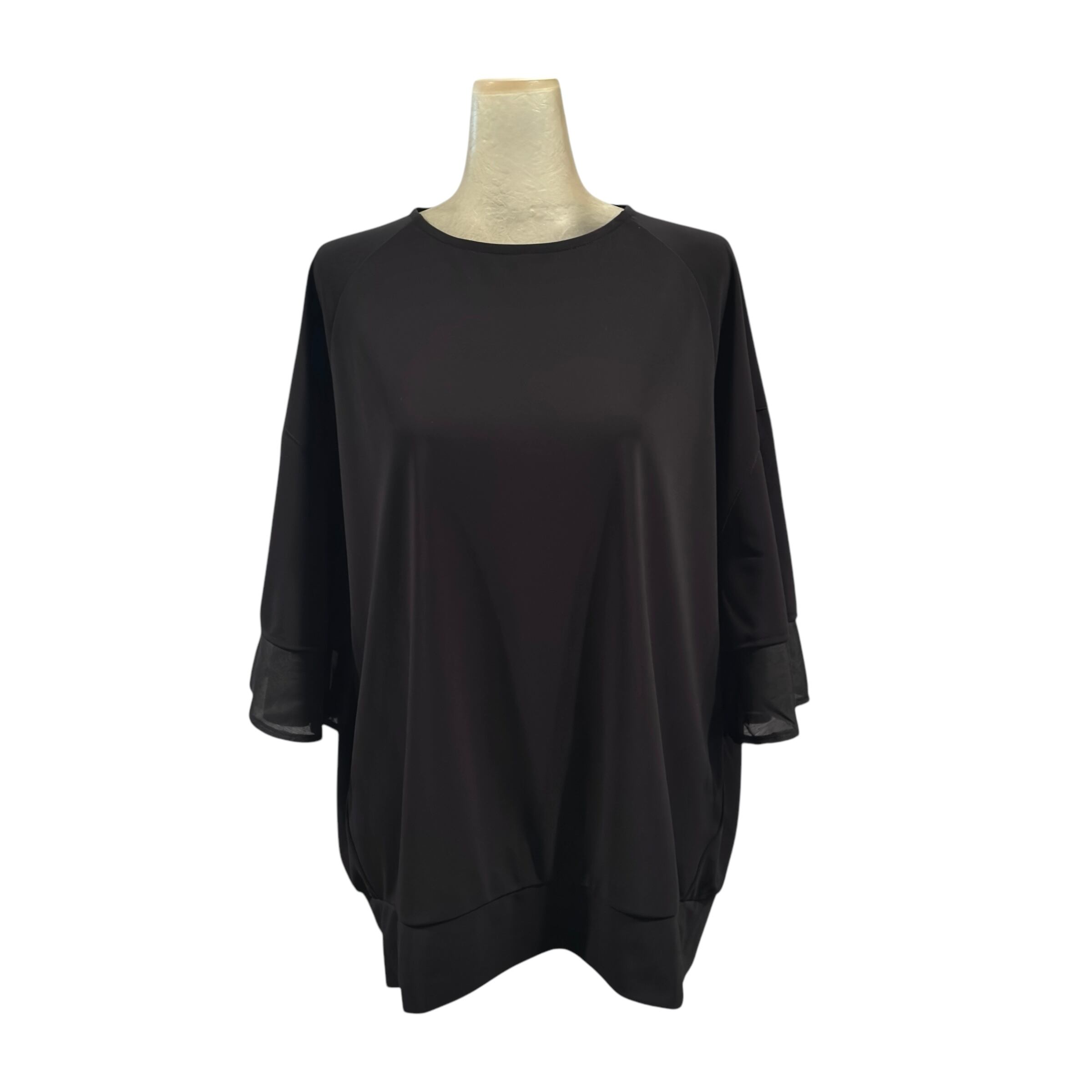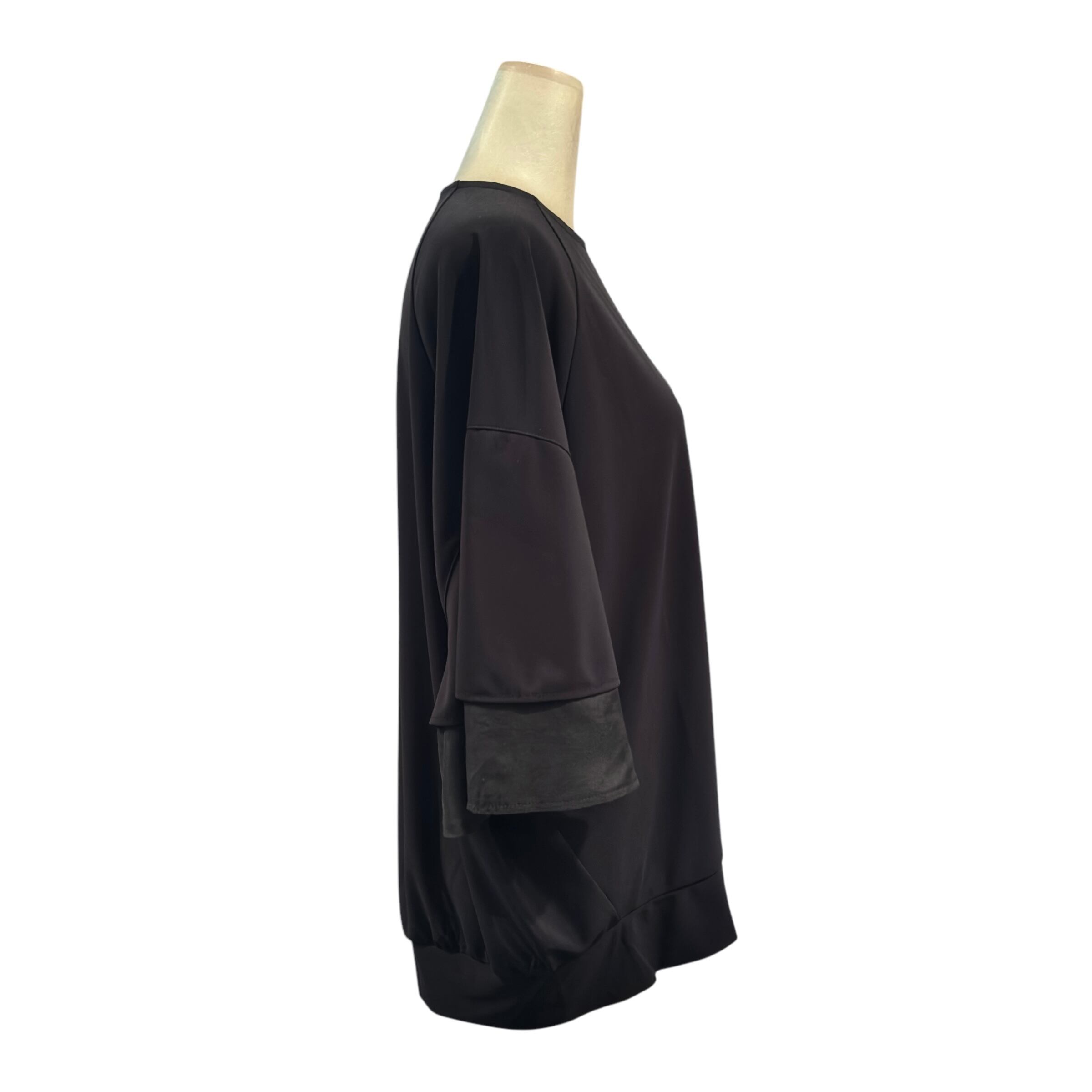 PUPULA(ププラ) スムースファブリック シフォントリム ラグランスリーブ プルオーバー【レディースファッション 30代 40代 50代 60代】